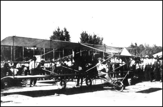 Closed An Otherwise Re- markably Successful Fair NORTON COURIER by Fred M. Duvall, Publisher Thursday, September 7, 1911 Our information is that the particular machine sent to Norton was Curtiss's own private machine, and what he called a Hydroaeroplane. It was differently built for the regular aeroplane in that it had pontoons attached for the purpose of using it to settle upon and rise from a body of water. The pontoons were removed before sending to to Norton, but apparently not rebalanced. Mr Frisbee started from the west end of the grounds, rising nicely into the air to the height of about 40 feet, when the machine suddenly dropped to the earth like so much stone. The aviator was uninjured, but not the machine. Certain parts of it were badly broken, bent and twisted. This ended the attempt at flying for that day. Mechanics of the company, and all hands at the garage were put to work on repairing. New pieces were put on from repairs carried, and an attempt to balance up the machine by taking off certain parts and moving the engine forward. About four o'clock Friday afternoon, the machine was pushed out into the parkway inside the track and run down to the northeast part next to the track. There the engine was tried out a couple of times, but no start made. It was said the wind was unfavorable, but our best judgment for that is that Mr. Frisbee had grave doubts of the machine acting right. He was not satisfied that the exact balance of the parts needed for a successful flight existed. It was getting late, the races were over and the people were getting uneasy. One by one, two by two, and directly in bunches, men came down to where the machine was until two hundred people had grouped about the machine. This crowd was given to understand that the conditions were unfavorable and exceedingly dangerous to attempt a flight. Nevertheless, the crowd, or a portion of it, became insistent, jeering at and taunting the aviator. This was kept up until the man became almost frantic, and with the sound of coward, and other abusive epithets ringing in his ears, and contrary to his own and the managers judgement, he jumped into the seat and bidding his goodbye, he sent the machine out into the field, where in about 200 ft it rose into the air. |