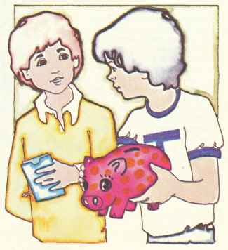 and returned with a blue book inside a plastic case. Bruce hurried home. His friend Tommy was riding his bike. "Look," Bruce called, "I have my own bank account." "Wow!" Tommy said. "Do you think I could have one, too?" "Let's count the money in your piggy bank," Bruce said. "You need at least $5 to open an account." "I have lots of pennies and some dimes," Tommy said. The boys carefully counted the change. "Why don't you just keep it at home in your own bank?" Tommy Asked. "Because when I put it in the bank my money earns interest. By the end of one year, my $5 will have grown to more than $5.25." Gee, that's great!" Tommy said. "Tomorrow I'll take my money to the bank, too."