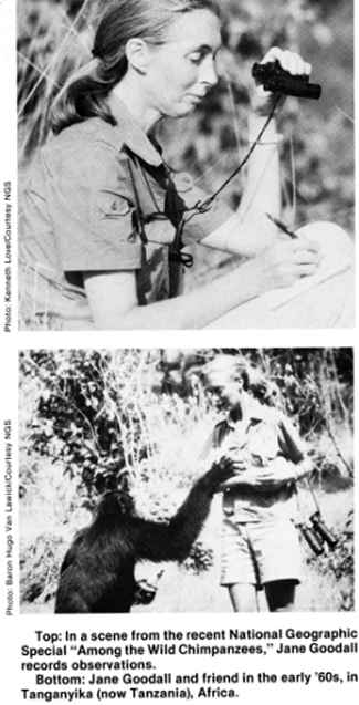 that point. Was the Goodall special harder to write than your others? Jampel: Yes and no. At first I was writing things about the chimps like, "Fifi and Figan are playing while Flint is nearby and Fabin and Flow are fascinated with....,." and it sounded like I was writing for Little Golden Books. We also had a hard time with past and present tense. In other ways, it was easier. It's a story with a beginning, a middle, and an end. It even has a charming, intelligent leading lady, which is rare in documentaries. In most documentaries there's no one for you to identify with. I remember the way the narrator told the Jane Goodall story. It was beautiful, yet so simple. these were your words, weren't they? Jampel: Yes. You can't use fifty-cent words that are gong to make the audience say, "Huh?" If you do, they lose the next two sentences. The minute you start getting too clever, you detract from what you're trying to do. Most of my writing is simple and straightforward, and it tells a story. Cutesy phrases are out. You must tell the story clearly and logically. I learned that wall-to-wall words bombard people and turn them off quickly. So I "create meadows." When you see scenes of Jane walking throught the forest, I had said, "OK, here's the perfect opportunity for a 'meadow.' We'll just let her walk for a while." And we did. She just walked and looked, and then we came back in with narration. |