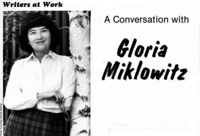 from Gloria Miklowitz, October 12, 1987 This is the first chance I've had to thank you for the nice article you did on me. It was a pleasure meeting with you and I appreciate the chance to have seen the interview before you sent it out. Congratulatons to you and I hope you see many more publications in the future. Gloria |