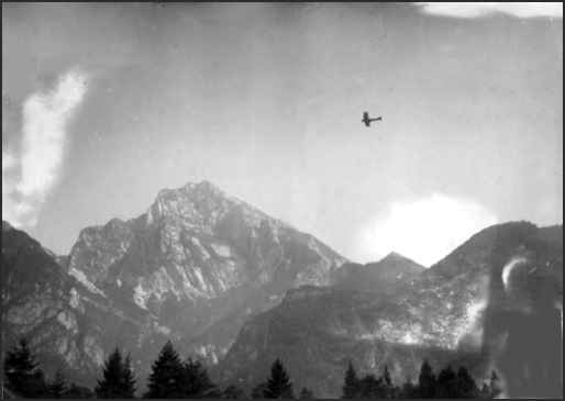 Note the rough terrain where they flew. Aeroplano italiano volando sobre el monte "Grappa" Se nota aquí como era la zona por donde volaban. |
