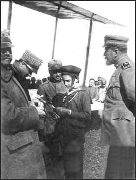 A cannon made of rattans to deceive the enemy aviators. General Cadorna and his General Staff. Nannini anotó al dorso: Un cañon de bejucos para engañar a los aviadores enemigos. El General Cadorna y su estado mayor. |