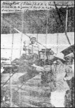 Prince Chakrabongse, Chief of the Army General Staff, sits in the plane with the Belgian Pilot. |