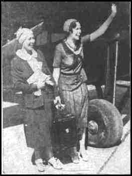 | The only two women passengers accompanying the 1931 National Air Tour for the Edsel Ford Trophy, which started from Ford Airport, Saturday, are Mrs. James H. Doolittle, left, wife of the noted former Army flier who is referee of the tour, and Mrs. Ray W. Brown, wife of the assistant starter of the tour. Both women are flying in Doolittle's plane. | As each plane entered in the tour is required to carry its maximum load, each person and each article of baggage carried was weighed before the tour started. The photo shows Walter E. Lees, veteran Detroit flyer, on the scales while Harry Russell, Ford Motor Co. pilot who won the tour last year, looks on. |