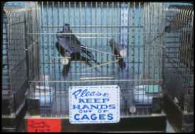 and listen for fluttering birds when small children (and sometimes ignorant adults) run their fingers across the cage or bang on the cages to make the birds move. this is tramautic for