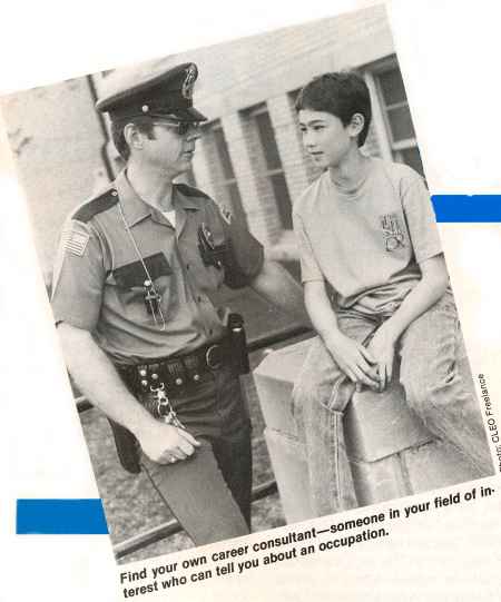 enough to do the job, networking will not help you keep it. Still, like all cliche's, there's some truth to this one. It helps to know the right people. Certainly it's easier for someone to get a job if his or her father or mother is president of the company but even if you don't know a single soul in the field that interests you, it is possible to open that door just a little bit yourself. What you need to do is find a "consultant," someone you can talk to, someone whose brain you can pick, someone who knows the field you are exploring. Inside Information Suppose, for example, that you're interested in getting into law enforcement, as Tim is. Tim found out that filling out job application forms and taking tests is not the only way to learn about a profession. So he sought out a professor of criminal justice at a local community college and questioned the professor. "Are there any tricks to taking the oral |
