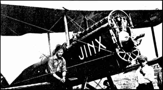 from Ripley's Believe it of Not One never knew what might happen, and quite often something did. I was immensely impressed when running through Harry Huking's log book recently to note so many entries like, "Forced landing, no oil pressure"; "Forced landing, broken fuel line"; and "Forced landing, dead stick". In my own log I found on one page notations of four flights, three of which ended up in bang-ups of one kind or another, and two of which occurred on the take-off. Those were the days when it was fine to be young, and on looking back at them now, I sometimes wonder. Well, to get back to my story, there we were, Harry and I, up in the air over Baltimore, waiting for Lee to show up. I was doing the flying from the front seat, for Check Pilot Huking had a reputation as an aerial photographer. Suddenly, when about 2,000 feet over the harbor, our engine stopped dead. I shouted in the ominous stillness, "You take it, Harry!" and immediately let go of the stick and bent down with my head in under the cowling, frantically trying to turn on the emergency fuel tank, the petcock of which was stuck fast. Our plane banked steeply to the left, so steeply in fact that our entire 2,000 feet of altitude was completely lost in making one turn. We barged over a schooner in the bay at about one hundred and something miles per hour, just missing its masts by inches. Then we struck on an ash dump on the water's edge, and kissed the ground at least half a dozen times, before coming to rest up on our nose, in the middle of the dump. We climbed out and reufully surveyed the damage, while a small crowd assembled from the near-by docks. The propeller was broken and the radiator bent, and that was all the damage that was done. After we recovered our breath, I said, "You certainly came in fast enough, Harry." He looked startled, and answered, "Why, I didn't have the stick." And to our mutual astonishment, on comparing notes, we found that the airplane had actually landed itself. Neither of us had as much as touched the stick from the time the motor had stopped until it had finally come to rest on its nose. Harry, who was my senior, and who had never heard or even suspected that I had turned the controls over to him, had been just about to cuss me out for diving in so fast and for coming so close to the schooner, when I had taken the wind out of his sails by mentioning these facts first. There may be other similar cases, but this one is the only one that I ever heard of that an uncontrolled airplane not only landed itself, but picked the only possible terrain to do it on, and at the expense of only a bent prop and radiator. |