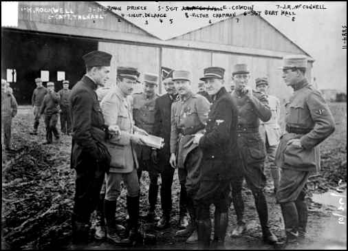 Left to Right: 1. K. ROCKWELL, 2. CAPT. THENAULT 3. NORMAN PRINCE, 4. LT. DELAAGE, 5. ELLIOTT COWDIN, 6. BERT HALL, 7. J.R. MCCONNELL, 8. VICTOR CHAPMAN, Library of Congress Collection, 9-17-08 |