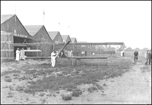 In this picture can be seen some of the many hangars at the Moisant School. In the left