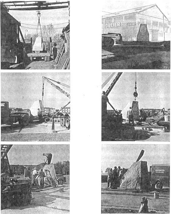 FROM THE STONECUTTER'S YARD the monument was moved to its final site on Governors Island where the bronzework was permanently attached.