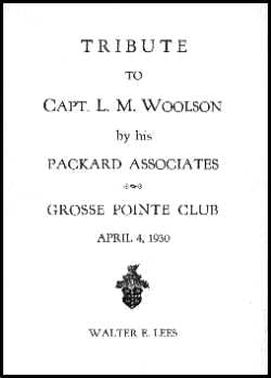 | TRIBUTE TO CAPT. L. M. WOOLSON by his PACKARD ASSOCIATES -=- GROSS POINTE CLUB APRIL 4, 1930 OOO WALTER E. LEES |